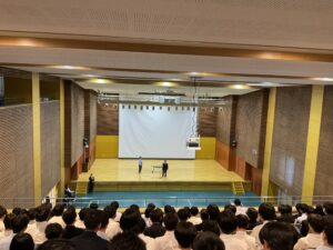 校長先生の講話、表彰、生徒会長から生徒会選挙について、カナダ・ニュージーランド・ベトナムの海外研修参加者からの現地での様子や学びについての発表、生活指導部長の講話と多くの刺激ある話がありました。