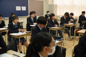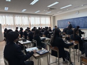 自分の興味のある学問分野・職種から3つを選択し、時間ごとに教室を移動し、説明を聞くといった形式で実施され、生徒はそれぞれの説明を前向きに聞いている様子でした。