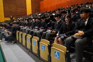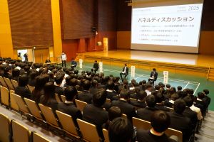2025年11月19日(水) 1学年の全生徒を対象に「キャリアセミナー」を開催いたしました。 本校の「キャリアセミナー」では、 現在社会人として活躍している本校卒業生が来校し、 ・高校時代の話 ・進学先で力を入れたこと ・仕事でのやりがい ・高校生へのメッセージ を在校生に伝えます。 今回は、7名の卒業生が来校して、「進路選択」のためになる話をしてくれました。 文理コース選択の時期が迫る1年生にとって有意義な時間になってくれたらうれしいです。