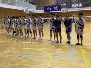4回戦は東洋戦。応援にも熱が入ります。ギャラリーから大声援を受けスタートから一進一退の状況。途中バックアタックを土屋君が見事に決めるなど良い場面も見られた。試合は中盤まで五分五分の状態。そこから一気に引き離され18-25で奪われる。2セット目は終始東洋ペース。リベロ笠神君のナイスレシーブや2年生エース嵯峨山君が強烈なスパイクを決めるものの終わってみれば17-25で負け。ベスト16位という結果となりました。
