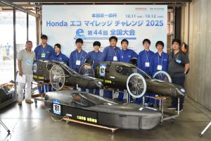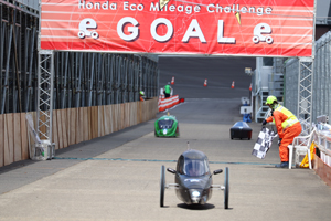 10月11日(土)・12日(日)栃木県にあるモビリティリゾートもてぎ『スーパースピードウェイ』にて、エコマイレッジ燃費競技の全国大会が開催されました。この競技は,決められた距離を時間以内に走行し、燃料消費量の少なさを競います。本校からは、3台が出場しました。